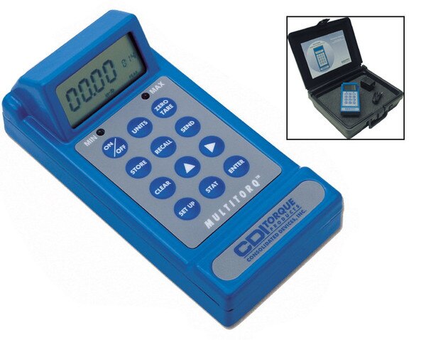 The MULTITORQ portable electronic torque meter displays torque readings from sensors that attach between sockets and driver. MULTITORQ is a highly versatile torque analyzer/data acquisition system that can be used with sockets, extensions, universal joints, ratcheting drivers or any combination of these. Sensors are sold separately, available in 8 ranges from 2-20 in. ozs. to 150-1500 ft. lb. Accuracy ± 1% of reading (± 2% reading for 20 in. oz., and 10 in. lb.) 10-100% of sensor range.