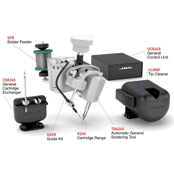 - TRA245 Soldering Unit with CSR245 Cartridge Exchanger allows the soldering robot to use different tip shapes to achieve the highest quality on each soldering point.
