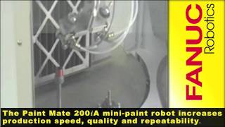 FANUC Robotics' Paint Mate robot is a compact, electric servo-driven paint robot with "best in class" performance designed for operation in a hazardous environment. Based on the LR Mate Series, the Paint Mate's speed and dexerity are a perfect fit for hazardous duty applications. The Paint Mate can be used for small parts painting or a material saving alternative to multiple fixed guns.