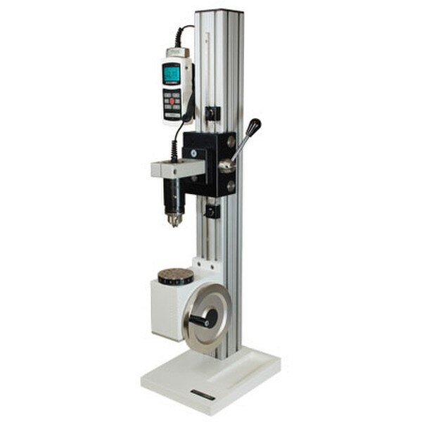 The TST Torque Measurement Test Stand is ideal for a wide variety of torque testing applications up to 100 lbin, including closure torque testing, fastener torque testing, and more. The TSTÂ’s versatile modular design allows it to be configured for a variety of torque sensors and gripping fixtures. Ultra-smooth hand wheel operation ensures ease of use and a lever-operated slider with travel stops makes engaging and disengaging samples quick and efficient. The stand includes a torque loading plate with tapped holes for grip and custom fixture mounting and a resetable angle indicator. Available in vertical and horizontal orientations.