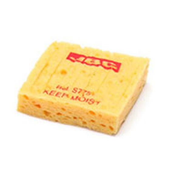 This compressed sponge should be used wet with deionized water (water car battery). Otherwise, it is likely that the tip becomes dirty due to dissolved salts in water.
